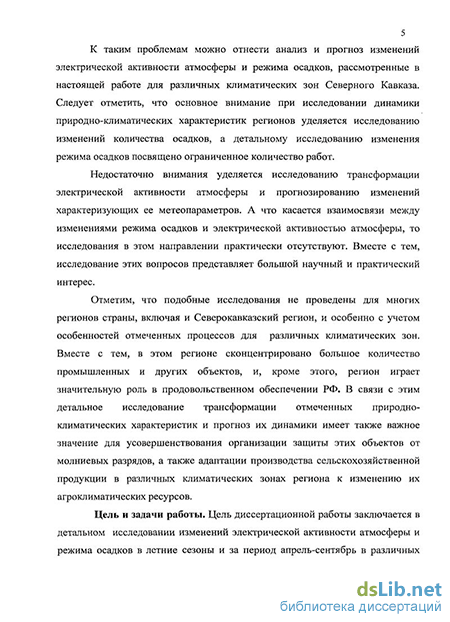 Цель и задачи работы. Цель диссертационной работы заключается в детальном исследовании изменений электрической активности атмосферы и режима осадков в летние сезоны и за период апрель-сентябрь в различных климатических зонах Северного Кавказа, а также в прогнозировании динамики этих природно-климатических характеристик.