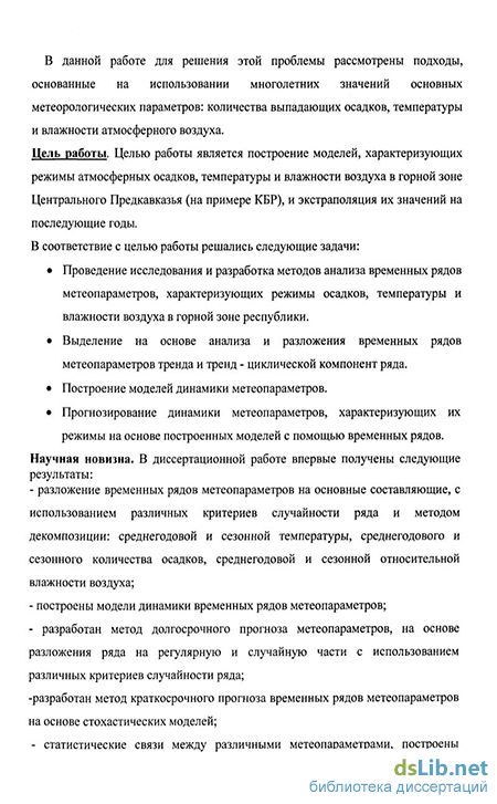 разработан метод долгосрочного (20-25 лет) прогноза метеопараметров на основе разложения ряда на регулярную и случайную части с использованием различных критериев случайности ряда; -разработан краткосрочный (3-5 лет)метод прогноза временных рядов метеопараметров на основе стохастических моделей;