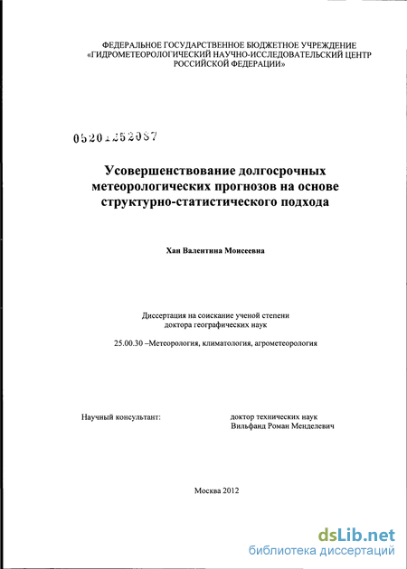 Похожие диссертации на Усовершенствование долгосрочных метеорологических прогнозов на основе структурно-статистического подхода