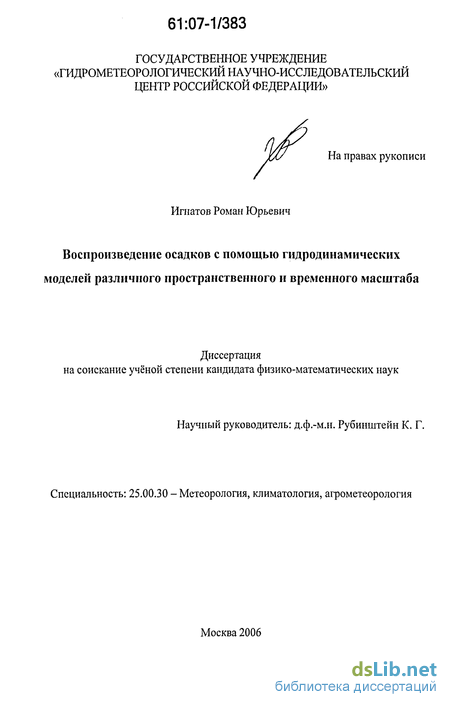 Исследование процессов преобразования влаги в атмосфере является одной из приоритетных задач современной метеорологии. Эти процессы существенно влияют на энергетику атмосферы. Важнейшим элементом гидрологического цикла атмосферы являются осадки. Атмосферные осадки формируются в результате взаимодействия процессов разных масштабов - от молекулярного до глобального. Поэтому близкое к наблюдениям воспроизведение осадков в численных экспериментах с гидродинамическими моделями циркуляции атмосферы различных пространственных и временных масштабов является актуальной задачей численной метеорологии. Задаче исследования воспроизведения осадков на различных временных и пространственных масштабах гидродинамическими моделями посвящается диссертация.