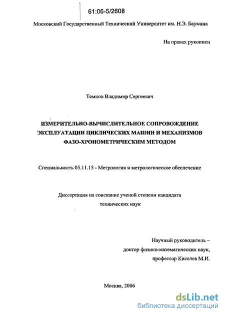 Цель диссертации заключается в разработке методов и технических средств, позволяющих с высокой точностью определять параметры текущего технического состояния циклических машин и механизмов, осуществлять мониторинг технического состояния в процессе их функционирования, с использованием построенных для них математических моделей и экспериментально получаемых временных рядов и частотных характеристик.