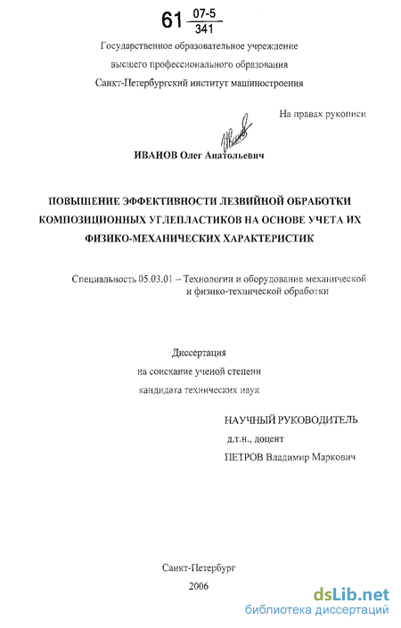 Реализация результатов. Предложенные-методы комплексной оценки физико-механических свойств композиционных углепластиков с целью выбора рациональных режимов резания, повышение эффективности механической обработки и качества обработанной поверхности заготовок. Результаты нашли применение в машиностроении на операциях механической лезвийной обработки (ФГУП ЦНИИ КМ «Прометей», ОАО «Силовые машины» ЛМЗ, ЗАО Завод «Композит»).