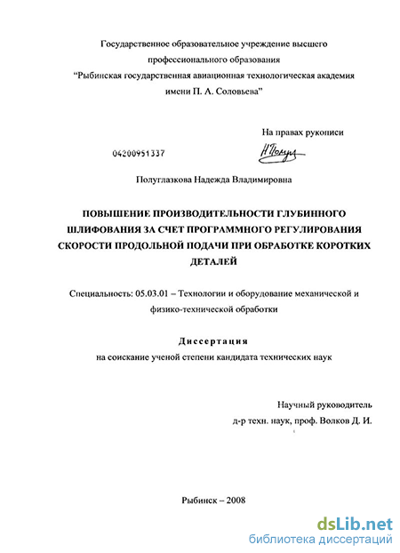Актуальность работы Технология обработки деталей абразивными инструментами совершенствуется в направлении повышения производительности процесса шлифования, оптимизации характеристик абразивного инструмента, повышения качества обрабатываемых поверхностей, в том числе точности обработки, автоматизации операций шлифования. В настоящее время процесс глубинного шлифования (ГШ) широко применяется при обработке труднообрабатываемых материалов в авиационной и инструментальной промышленности.