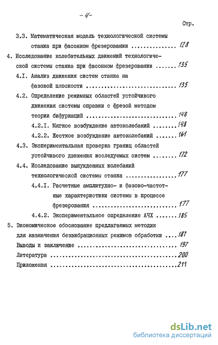 Теоретическое и экспериментальное исследование устойчивости движения и вынужденных колебаний выполнено на базе расчетных моделей горизонтально-фрезерного станка мод.6Н82. Параметры моде- лей: жесткость, частоты собственных колебаний, приведенные массы и моменты инерции, - определялись экспериментально. Зависимости, представляющие влияние технологических параметров обработки на величину сил резания, находились на основании экспериментальных исследований составляющих сил резания при свободном точении с применением многофакторного интерполяционного планирования. Анализ возможности возбуждения автоколебаний в парциальных системах станка производился на основании решения нелинейных дифференциальных уравнений движения графическим методом.