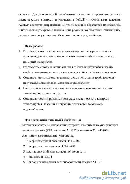 Разработать комплекс методов автоматизации экспериментальных установок для исследования теплофизических свойств твердых тел и насыпных материалов.