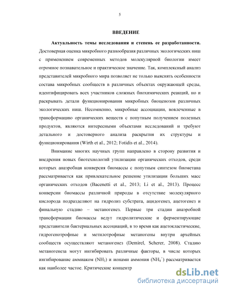Lv et al., 2014). Некоторые исследователи в качестве методов устранения токсичного эффекта аммиака предлагают регулирование соотношения C:N в исходном субстрате (Shanmugam, Horan, 2009), контроль температурного режима анаэробной системы (Rajagopal et al., 2013) и уровня рН перерабатываемой смеси (Ho, Ho, 2012). В ряде работ показана возможность бактериальных и архейных сообществ адаптироваться к критическим концентрациям NH3/NH4+ (Angenent et al., 2002; Calli et al., 2005а), а также эффективность применения некоторых алюмосиликатных минералов в процессе анаэробной микробной конверсии остаточной биомассы (Montalvo et al., 2012). Однако, несмотря на отдельные достижения в развитии эффективных способов анаэробной конверсии отходов, содержащих азот в высоких концентрациях, проблема сбоя работы анаэробных реакторов по причине ингибирования микроорганизмов аммиаком требует разработки новых способов, направленных на стимуляцию микробного процесса деструкции биомассы с попутным синтезом биогаза, а также изучения микробных сообществ, вовлеченных в данный процесс.