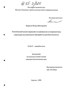 Апробация работы. Материалы диссертации были представлены на 5-м и 6-м Международных совещаниях "Azospirillum and Related Microorganisms" (Ганновер, 1991; Шарвар, 1994), на 8-м Восточноевропейском симпозиуме по биологической фиксации азота (Саратов, 1992), на 9-м Баховском коллоквиуме по азотфиксации (Москва, 1995), на 10-м Международном конгрессе по азотфиксации (Санкт-Петербург, 1995), на 1-м Рабочем совещании микробиологов Поволжья (Саратов, 2000), на 5-й и 6-й Школах-конференциях молодых ученых "Горизонты физико-химической биологии" (Пущино, 2000, 2002), на 10-м Международном конгрессе IUMS The "World of Microbes" (Париж, 2002), на 1-й и 2-й Региональных конференциях молодых ученых "Стратегия взаимодействия микроорганизмов с окружающей средой" (Саратов, 2002, 2004), на Межрегиональной научной конференции молодых ученых и специалистов "Вавиловские чтения-2003" (Саратов, 2003), на 3-й Всероссийской школе-конференции "Химия и биохимия углеводов" (Саратов, 2004), на отчетных научных конференциях ИБФРМ РАН (Саратов, 1999, 2003, 2004). Диссертационная работа обсуждена и одобрена на расширенном