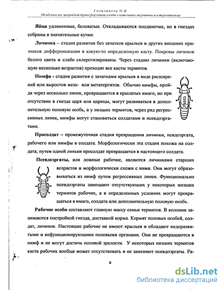 В связи с темой исследования нам представляется важным изложить в настоящей главе более подробные сведения по биологии именно тех видов термитов, которые использовались в нашем исследовании.