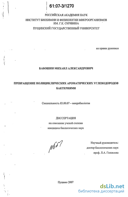Актуальность проблемы. Полициклические ароматические углеводороды (ПАУ) образуются в неспецифических процессах деструкции различных органических веществ при высоких температурах, например, при лесных пожарах, коксовании угля. С развитием промышленности, когда к природным источникам ПАУ прибавились антропогенные (сжигание топлива, проливы нефти и каменноугольных продуктов), возникла проблема загрязнения окружающей среды этими токсичными веществами. Присутствием ПАУ в биосфере на протяжении всей истории органической эволюции нашей планеты обусловлено существование живых организмов, способных к использованию ПАУ в качестве источника энергии для жизнедеятельности. Это бактерии различной систематической принадлежности. В настоящее время ПАУ-деградирующие бактерии интенсивно изучаются в связи с разработкой технологий детоксикации промышленных отходов и биоремедиации загрязненных почв, донных осадков и грунтовых вод. Особое внимание уделяется выделению и исследованию штаммов, способных к деградации так называемых высокомолекулярных ПАУ, молекулы которых содержат больше трех ароматических колец. Высокомолекулярные ПАУ более устойчивы к биодеградации, чем ПАУ с меньшей молекулярной массой, и число известных бактерий, способных их окислять, существенно меньше. Многие высокомолекулярные ПАУ оказывают мутагенное и канцерогенное воздействие на человека и животных, в связи с чем их концентрация в окружающей среде является объектом постоянного мониторинга. Биоремедиация считается наиболее перспективным методом очистки почвы и других сред от ПАУ.