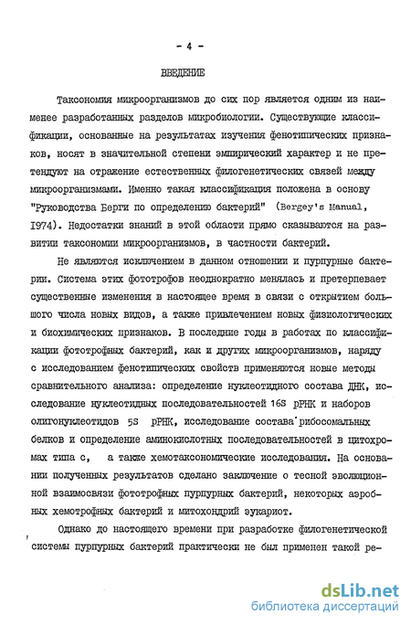 Таксономия микроорганизмов до сих пор является одним из наименее разработанных разделов микробиологии. Существующие классификации, основанные на результатах изучения фенотипических признаков, носят в значительной степени эмпирический характер и не претендуют на отражение естественных филогенетических связей между микроорганизмами. Именно такая классификация положена в основу "Руководства Берги ПО определению бактерий" (Bergey s Manual, 1974). Недостатки знаний в этой области прямо сказываются на развитии таксономии микроорганизмов, в частности бактерий.