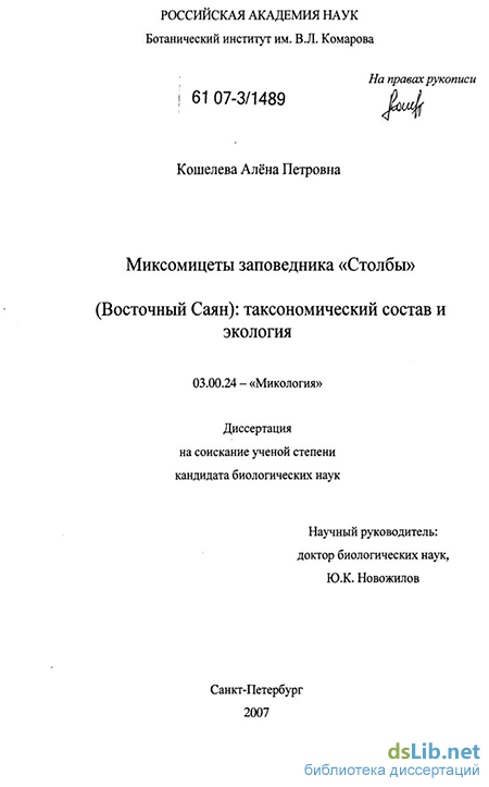 at the Botanische Staatssammlung, http //14184 65132/BSMMycology/ Collections/Specimens/Myxomycota/About cfm). Материалы исследования включены в ряд научных публикаций и итоговых отчетов, подготовленных в рамках международного проекта «Мировое биоразнообразие Eumycetozoans» (PBI Global Biodiversity of Eumycetozoans, National Science Foundation, USA, N0316284, http //slimemould uark edu) Часть полученных образцов используется на практических занятиях и лекциях курса «Систематика низших растений» в Санкт-Петербургском государственном университете