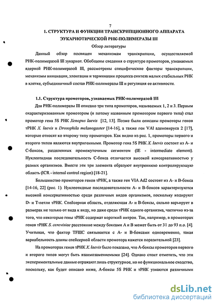 1.1. Структура промоторов, узнаваемых РНК-полимеразой III 7