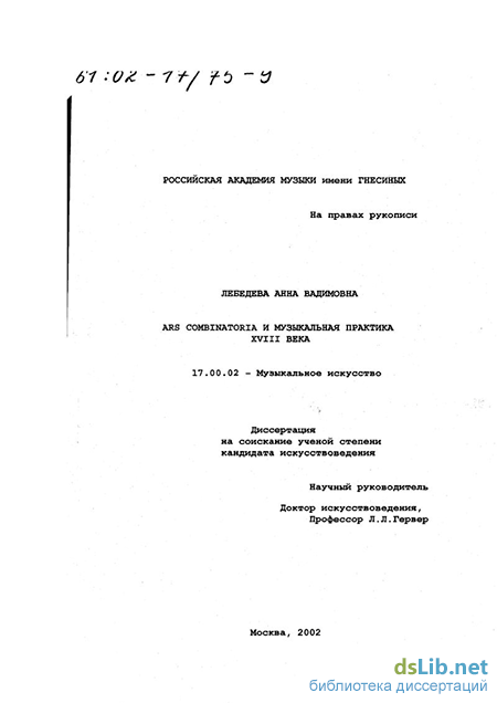 Учения об "ars combinatoria" в трактатах XVIII века 53