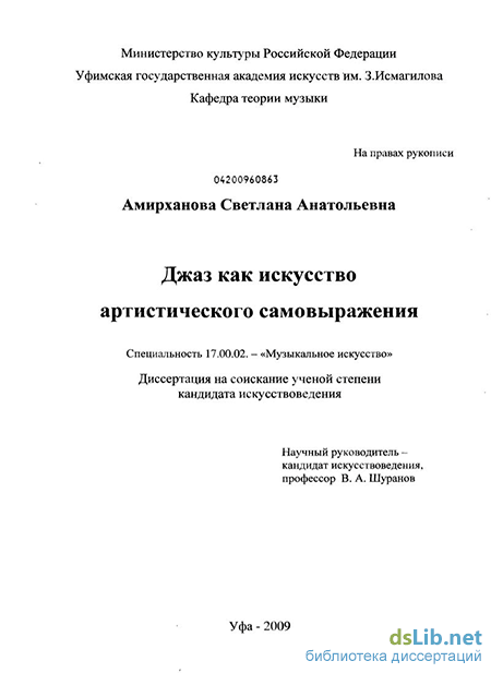 Глава II. Эстетика самовыражения джазового искусства в практике культуры 62