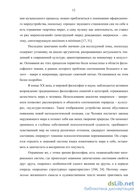 Показательно в связи с этим, что еще в работе «Ценность музыки» Б.В. Асафьев, философски осмысливая музыку, придавал ей более широкое значение, интерпретировал как феномен, объединяющий «глубинные структуры бытия с человеческой психикой, что естественно, превышает границы вида искусства либо художественной деятельности» [17, 19]. Ученый видел в музыке не отражение реальной действительности нашей жизни и переживаний, а отражение «картины мира». Он считал, что через познание становле 1 Термин «миниатюризация» не является авторским, а общепринят в современной искусствоведческой литературе. ния музыкального процесса, можно приблизиться к пониманию оформленного мироустройства, поскольку «процесс звукового становления сам по себе и есть отражение «картины мира», а саму музыку как деятельность, он ставил «в ряд мирополаганий» (конструкций мира), рождающих микрокосм - систему, синтезирующую maximum в minimum [17, 31].