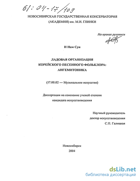 ладов, оперирующая данными современной монодийной теории и предусматривающая системно-иерархический порядок соотношения выявленных ладовых структур. В диссертации существенно расширяется представление о зеркально-симметричных связях в системе звукорядов АП, в том числе и с помощью приемов математического исчисления. Автор впервые предлагает подробный целостный анализ ладового строения и формообразования корейского фольклорного напева Арирап, в котором учитываются и структурно-пространственные симметричные отношения звукорядов АП, и некоторые моменты акустической природы. Наконец, впервые в российском музыкальном корееведении представлен аналитический обзор научной литературы (зарубежной и отечественной), проведенный с целью выявления основных направлений изучения традиционной корейской музыки.