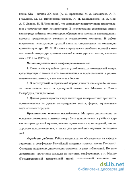 Практическое значение исследования. Материал диссертации, ее основные положения и выводы могут быть использованы в учебных курсах истории русской музыки, анализа музыкальных произведений, теории хорового исполнительства, а также для дальнейших научных исследований.
