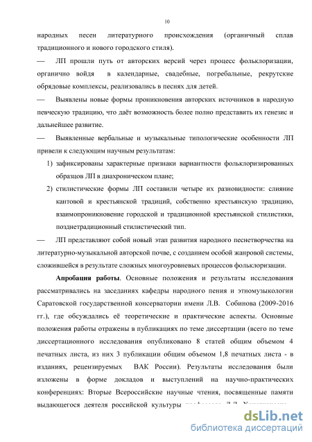 - Влияние песен литературного типа на обрядовый и детский фольклор Пензенской области