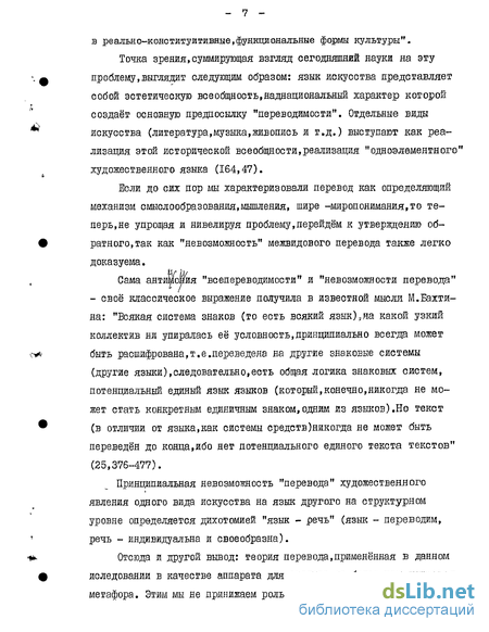 Отсюда и другой вывод: теория перевода,применённая в данном иследованйи в качестве аппарата для анализа,не более чем ключевая метафора. Этим мы не принижаем роль методологической состоятель ности данной теории,ибо давно уже известно,что познание в принципе метафорично (Ницше) и смена научной парадигмы всегда сопровождается сменой ключевой метафоры,вводящей новую область употреблений, новую аналогию. Такова и роль теории перевода в данном исследовании: это не идеология,а техника, пред определяющая стиль и способ мышления о предмете.