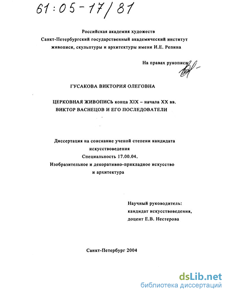 Глава 2. Церковная живопись Виктора Васнецова. «Религиозно национальный стиль» 45-98