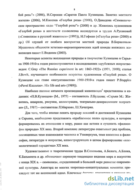 Степень научной разработанности проблемы. Публикации и исследования по проблематике диссертации можно разделить на две основные группы. Первая включает искусствоведческие исследования творчества Кузнецова и Сарьяна.