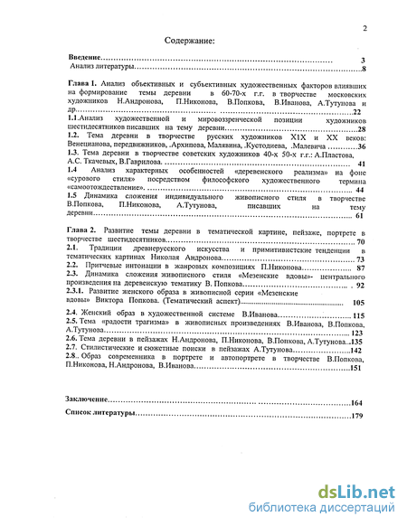 В соответствии с поставленной задачей - анализом отдельных сторон творчества московских художников - шестидесятников - мы имели возможность более полного охвата материала, обращая внимание как на более частный, так и абстрактный уровень. Это дало нам повод воспринимать В.Попкова, Н.Андронова, П.Никонова, А.Тутунова, В.Иванова и др. художников, писавших на тему деревни, как ярких продолжателей традиций русского реалистического изобразительного искусства рубежа веков, которые обладали мировоззренческой и стилистической общностью, единством принципов формообразования, близостью и одновременно разнообразием пластического языка. Философия. Литература. История. Труды русских мыслителей и западноевропейских философов способствовали раскрытию особенностей мировоззрения художников -шестидесятников, писавших на деревенскую тему. Это позволило нам не только прикоснуться к понятию художественной системы, но содействовало переосмыслению некоторых принципиально важных моментов в истории российской художественной культуры.
