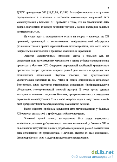 Немаловажный интерес представляют больные, у которых отмечается сочетание ХП и доброкачественной гиперплазии предстательной железы (ДГПЖ), особенно, если этой категории больных планируется выполнение оперативного вмешательства [16, 78, 158, 181]. Как известно, наличие ХП у больных ДГПЖ является фактором риска, недооценка которого может привести к возникновению ранних и поздних послеоперационных осложнений[60]. Большинство исследователей полагают, что в данном случае значительная роль в возникновении нарушений мочеиспускания у больных