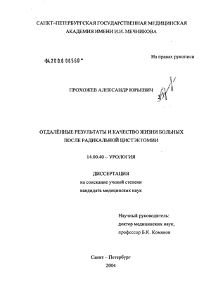 Определение «качества жизни» (КЖ) считается одним из важных критериев оценки эффективности лечения в онкологии - вторым после выживаемости [55]. Изучение этого понятия как многомерной интегрированной характеристики жизни человека позволяет получить ценную информацию об индивидуальной реакции его на болезнь, проводимое лечение и ведёт к формированию новых подходов к этому лечению [12, 175, 198, 275]. У больных, перенесших цистэктомию, оценка КЖ в последние годы приобрела огромное значение прежде всего в аспекте совершенствования методов деривации мочи [44, 180, 208, 221, 225, 226, 370]. Однако в нашей стране этот вопрос остаётся малоизученным.