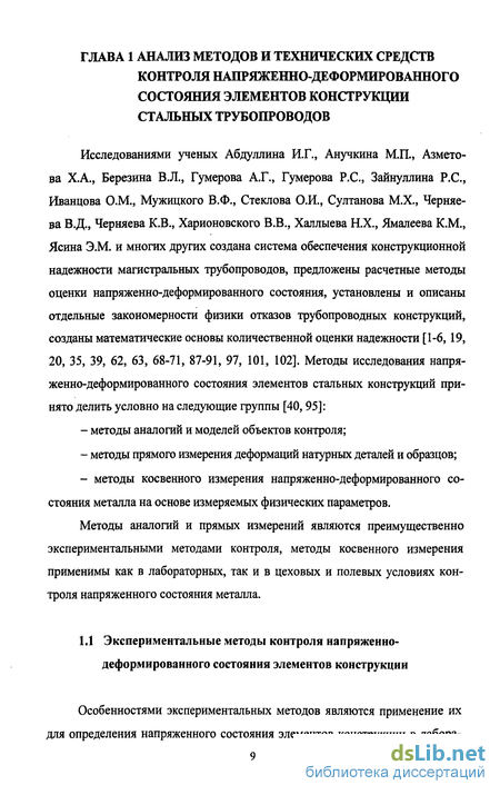 Глава 1 Анализ методов и технических средств контроля напряженно-деформированного состояния элементов конструкций стальных трубопроводов 9