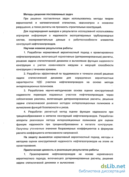 На защиту выносятся нормативный вероятностный подход, методы и методика оценки конструктивной надежности нефтегазопроводов на этапе их проектирования.