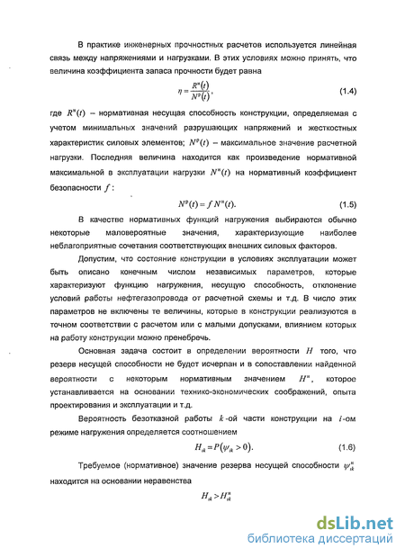 изменчивости нагрузки и несущей способности конструкции с течением времени, позволяет формировать проектные нормы надежности, технические решения, качественные и количественные требования по обеспечению и контролю надежности, а также требования к устойчивости нефтегазопроводов к отказам.