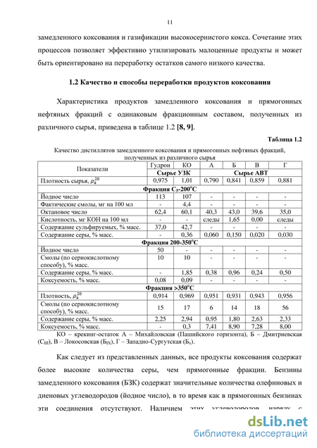 3.1 Физико – химические характеристики прямогонных дизельных и вакуумных фракций и дистиллятов коксования