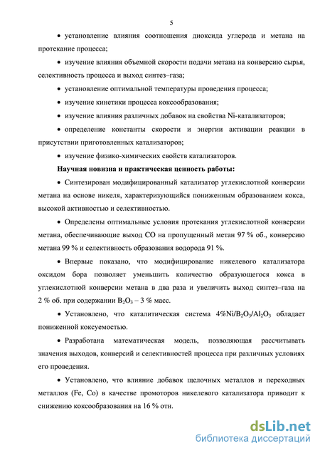 В данной работе исследованы основные закономерности протекания углекислотной конверсии метана на никелевых катализаторах и разработаны модификаторы, снижающие коксообразование. Основное условие, предъявляемое при этом к модификаторам, заключается в том, чтобы они не снижали активность и селективность каталитической системы на основе никеля.