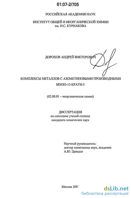 Апробация работы. Результаты исследований были представлены на XVII Менделеевском съезде по общей и прикладной химии (Казань, 2003 г), конференции-школе по супрамолекулярной химии (Туапсе, 2004 г), XXI Международной Чугаевской конференции по координационной химии (Киев, 2004 г), на ежегодном конкурсе научных работ ИОНХ РАН (2004 г), на Международной конференции по новым технологиям и приложениям современных физико-химических методов (ядерный магнитный резонанс, хроматография/масс-спектрометрия, ИК-Фурье спектроскопия и их комбинации) для изучения окружающей среды, включая секции молодых ученых Научно-образовательных центров России (Ростов-на-Дону, 2005) и