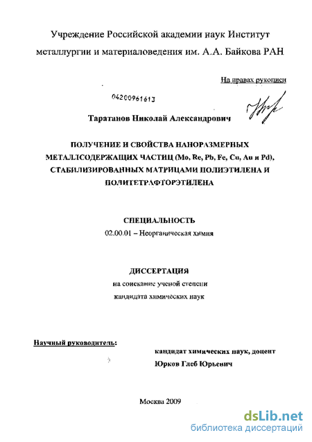 Целью настоящей работы явилась разработка метода синтеза и исследование композиционного материала типа кластер-полимер, представленного металлсодержащими наночастицами (Mo; Re; Pb; Fe; Си, Аи, Pd), стабилизированными в объеме матрицы полиэтилена высокого давления (ПЭВД) и па поверхности микрогранул политетрафторэтилена (ПТФЭ).