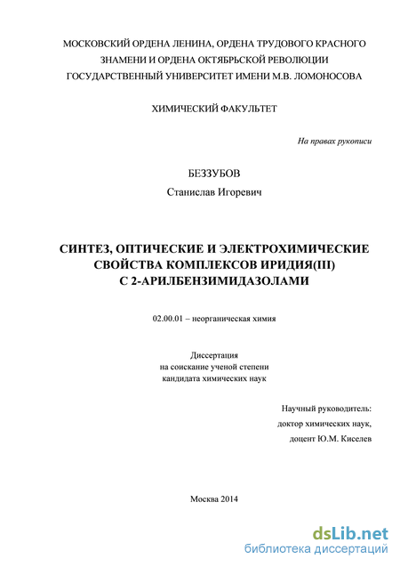 - Синтез и идентификация комплексов иридия(III) с 2-арилбензимидазолами