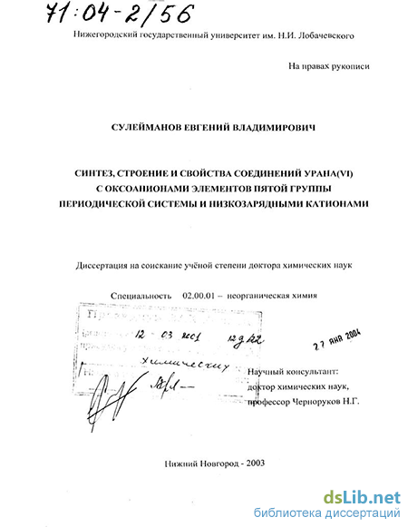 Благодарности. Ряд исследований проведен при финансовой поддержке Российского фонда фундаментальных исследований (проекты 97-03-33631,97-03-33617, 00-03-32532) и ФЦП "Интеграция". Автор выражает глубокую признательность д.х.н. Н.Г. Чернорукову, к.х.н. Н.П. Егорову, д.х.н. Н.В. Карякину, д.г.-м.н. А.Р. Котельникову, к.х.н. А.Н. Некрасову, чл.-корр. РАН Д.Ю. Пущаровскому, к.х.н. И.М. Романенко, к.х.н. А.И. Сучкову, д.х.н. И.Л. Ходаковскому, к.х.н. Г.К. Фукину, д.ф.-м.н. Е.В. Чупрунову и другим участникам исследований - студентам, аспирантам, сотрудникам ННГУ, ИЭМ РАН, МГУ, ИХВВ РАН, ИМХ РАН, ИНХ СО РАН за содействие при выполнении работы.
