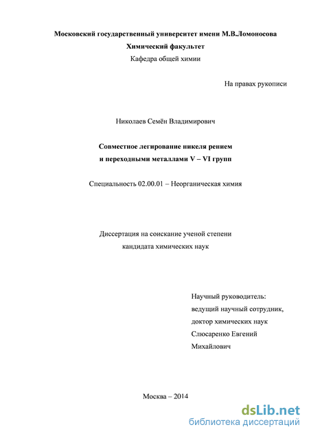 также определение области дисперсионного твердения никелевых сплавов системы Ni-Re-Nb-Cr-Mo и исследование взаимного влияния легирующих элементов на свойства упрочнённых сплавов.