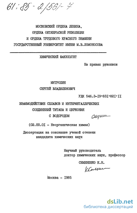 - Исследование взаимодействия с водородом сплавов системы Ті - Fe - V