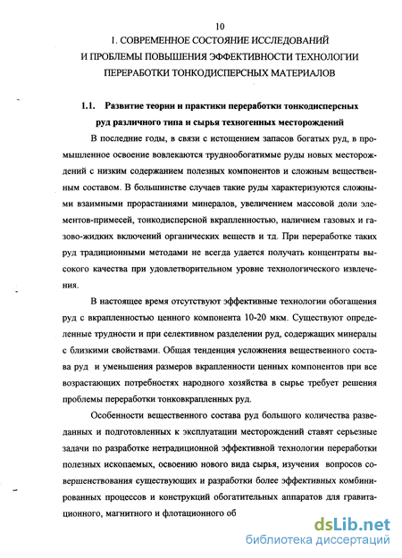 1.1. Развитие теории и практики переработки тонко дисперсных руд различного типа и сырья техногенных месторождений 10