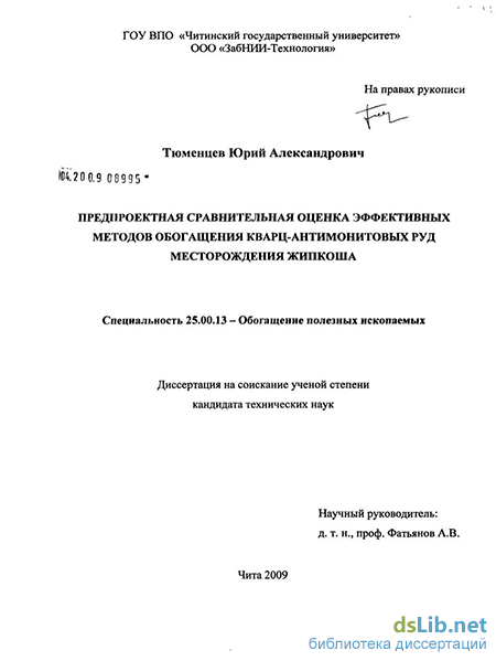4 Технико-экономическая оценка эффективности применения моно-методных и комбинированных схем обогащения сурьмяных руд мелких месторождений Восточного Забайкалья.
