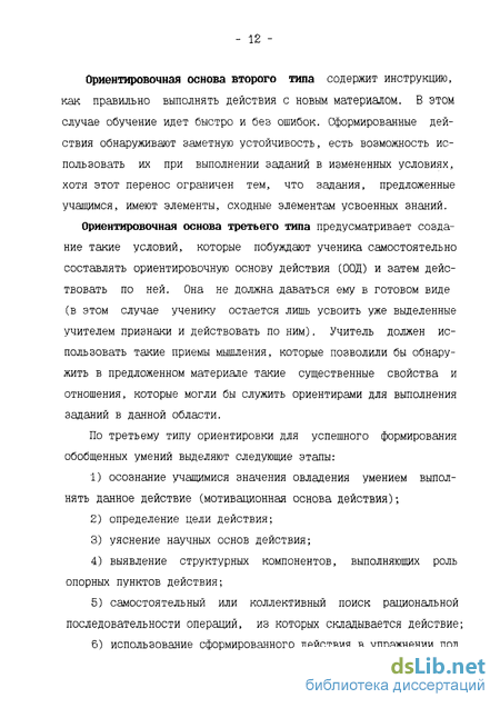 В решении проблемы формирования обобщенных умений многие авторы опираются на учение о трех типах ориентировки (П.Я.Гальперин, Н.Ф.Талызина). Данное учение ценно тем, что доказывает зависимость процесса формирования обобщенных умений от способов и типов ориентировки в заданиях.