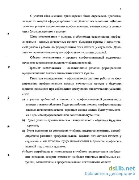 Цель исследования - выявить и обосновать совокупность профессионально - важных личностных качеств будущего юриста и дидактические условия работы по формированию этих качеств у студентов. Доказать экспериментальным путем эффективность данных условий.