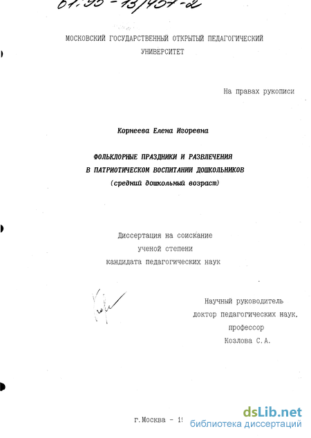 ГЛАВА 2. Определение роли и места фольклорных праздников и развлечений в патриотическом воспитании дошкольников .