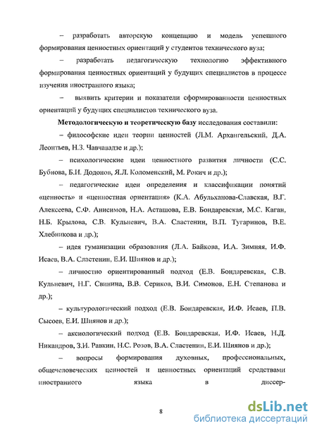 Однако, несмотря на обширный теоретический материал и глубокий анализ рассматриваемой проблемы, нам представляется недостаточно разработанным вопрос о формировании ценностных ориентации будущих специалистов технических вузов средствами иностранного языка.