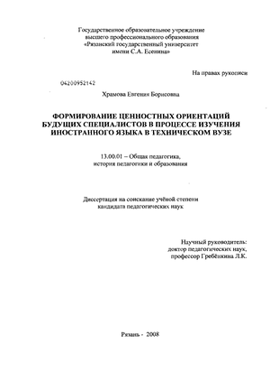 С целью аргументации необходимости формирования ценностных ориентации у студентов в процессе изучения иностранного языка в техническом вузе были проведены анализ и оценка состояния проблемы в теории и практике, выявлены истоки формирования ценностей в обществе, прослежена специфика дисциплины «Иностранный язык» в техническом вузе и возможность реализации её ценностного потенциала в педагогической практике. Исходя из требований государственного образовательного стандарта высшего профессионального образования (квалификация - инженер) и ретроспективного анализа состояния проблемы, мы стремились определить приоритетные направления в формировании ценностей и ценностных ориентации, проанализировать классификации ценностей, а также обосновать механизм перехода общественных ценностей в ценностные ориентации личности в процессе изучения иностранного языка. Было конкретизировано содержание базовых понятий нашего исследования: «педагогическая аксиология» «ценность», «ценностная ориентация» относительно формирования личности будущих специалистов технических вузов, прослежена взаимосвязь между ними.