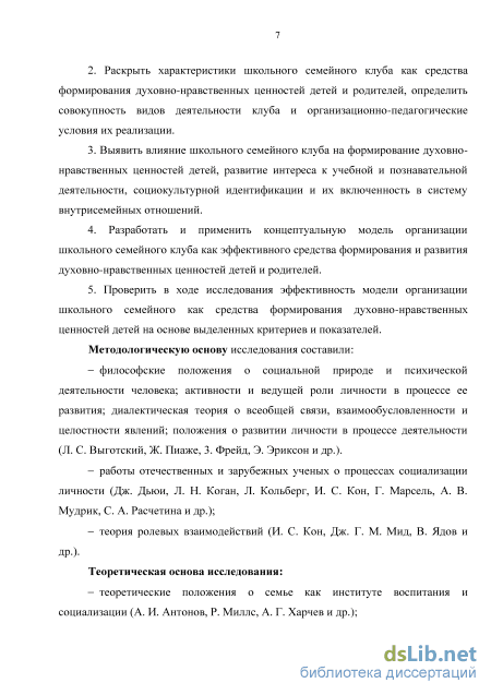 ГЛАВА 1. Теоретические предпосылки исследования проблемы формирования духовно-нравственных ценностей детей и родителей в условиях школьного семейного клуба 15