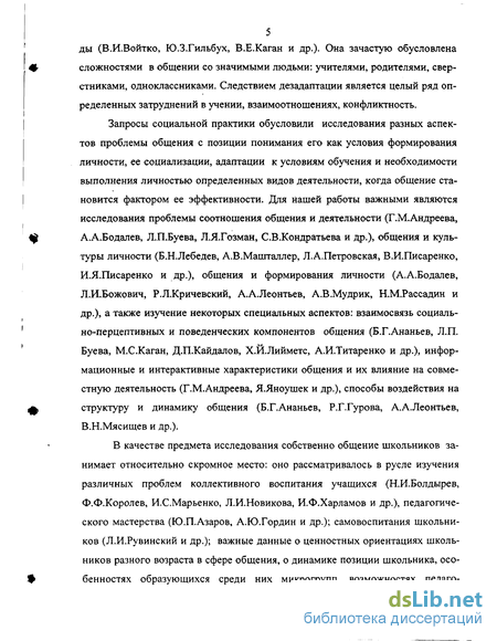 В качестве предмета исследования собственно общение школьников занимает относительно скромное место: оно рассматривалось в русле изучения различных проблем коллективного воспитания учащихся (Н.И.Болдырев, Ф.Ф.Королев, И.С.Марьенко, Л.И.Новикова, И.Ф.Харламов и др.), педагогического мастерства (Ю.П.Азаров, А.Ю.Гордин и др.); самовоспитания школьников (Л.И.Рувинский и др.); важные данные о ценностных ориентациях школьников разного возраста в сфере общения, о динамике позиции школьника, особенностях образующихся среди них микрогрупп, возможностях педаго-