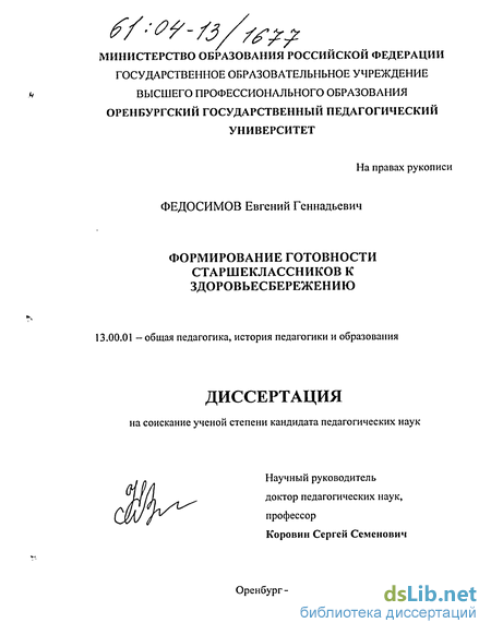 Серьезное внимание проблемам сохранения и укрепления здоровья обучаемых уделено в работах B.C. Быкова, Л.М. Куликова, С.С. Коровина, А.Я. Наина, С.Г. Серикова, П.П. Тиссена, Н.А. Фомина и др. В отдельных работах освещаются вопросы формирования готовности к определенной деятельности: И.Н. Кобзарев, В.Л. Моложавенко, С.Н. Фокеева.