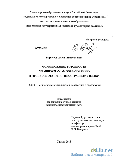 - Содержание и методы формирования готовности учащихся к самообразованию в процессе обучения иностранному языку